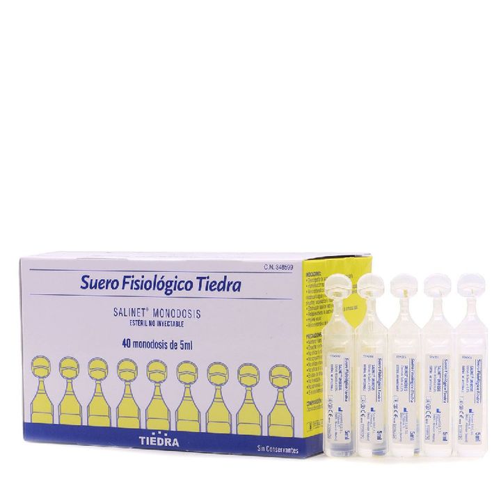 Solución estéril y sin conservantes para la higiene ocular y de las fosas nasales. Salinet Suero Fisiológico es una solución estéril y sin conservantes en formato de monodosis, que se presenta como un producto dos en uno: útil para completar una óptima higiene nasal y para proporcionar un alivio sintomático del catarro, así como para ofrecer un alivio sintomático de la irritación ocular. Salinet está especialmente concebido para la higiene ocular y el alivio de los síntomas de la irritación ocular, así como la higiene nasal diaria y la descongestión de las fosas nasales, alivio del catarro nasal y obstrucción nasal del bebé y del niño. Formulado sin conservantes ni fosfatos, cabe destacar que ninguno de los ingredientes de su composición ni el plástico empleado en el envase de monodosis son de origen animal.