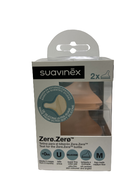Suavinex tetina silicona flujo M anticólico 2 uds se trata de un pack que contiene dos tetinas para biberón de silicona con forma anatómica y flujo medio, siendo la talla mediana (M) de este tipo. Además, imita de manera perfecta el pezón de la madre y se adapta al paladar del bebé durante la succión. Cuenta con los siguientes beneficios: